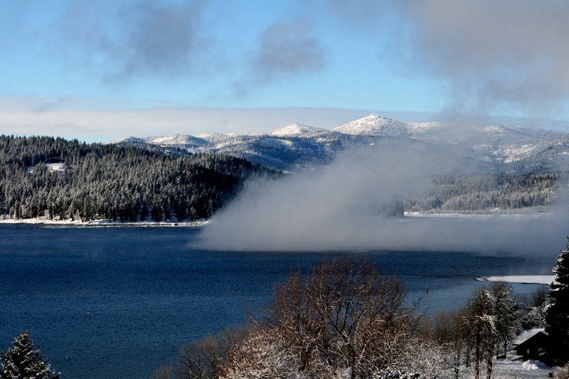 “Where there is smoke there is fire,” e-mails Don Sausser for this 16th and final Vacation Wild Card, “but not with this surface fog cloud formed as frigid early morning’s air met relatively warm lake water. In minus zero temperatures, snow buried Mica Peak basks in brilliant sun.” I appreciate Don’s photos. And Councilwoman KerriT’s. And the others I’ve used here to get me from mid-December to today. On Monday, I return to HBO Central, ready or not. I’m talking about myself when I say ready or not. I’m sure you’re fairly tired of the Wild Cards that I’ve been posting. Someday, I’ll figure a way to make HBO more interesting while I’m on vacation. I tip my hat to those of you who have hung out here and made life more interesting for others. For now, I’ll just post the Wild Card and, ahem, enjoy the cold and snow for one more day …