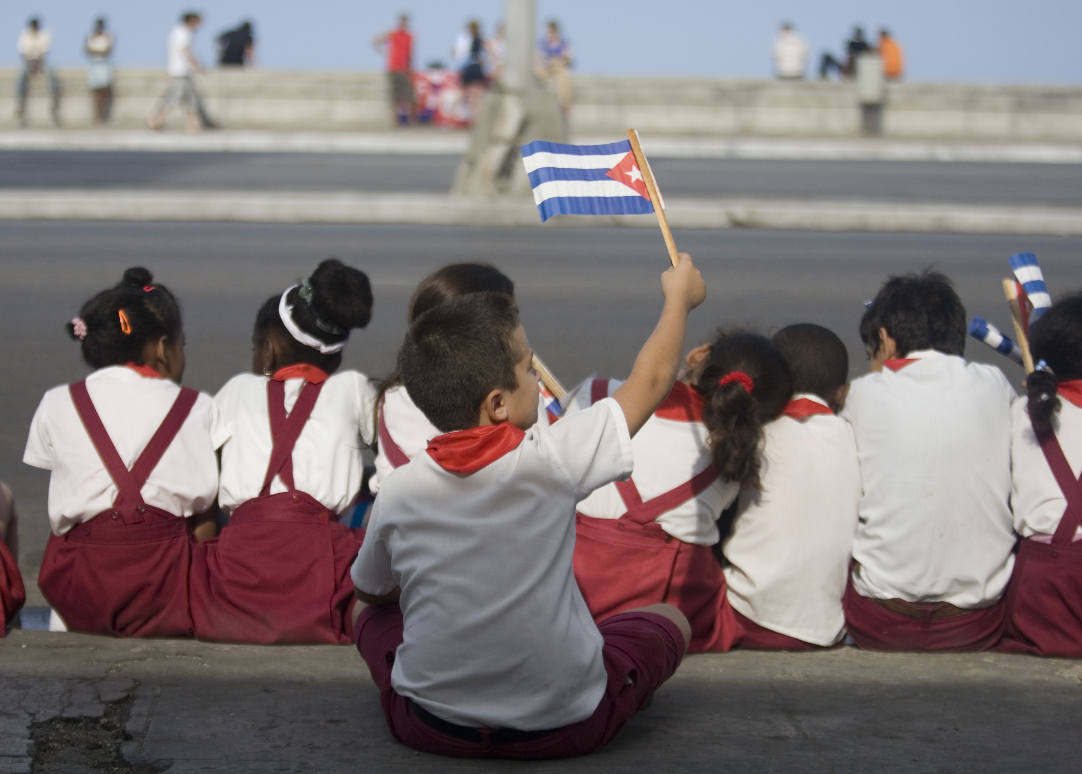 Children wave flags at the Malecon avenue on the Anniversary of Fidel Castro’s triumphant march into Havana when he defeated Cuban dictator Fulgencio Batista on 1959 in Havana, Cuba today. (AP Photo/Dario Lopez-Mills)