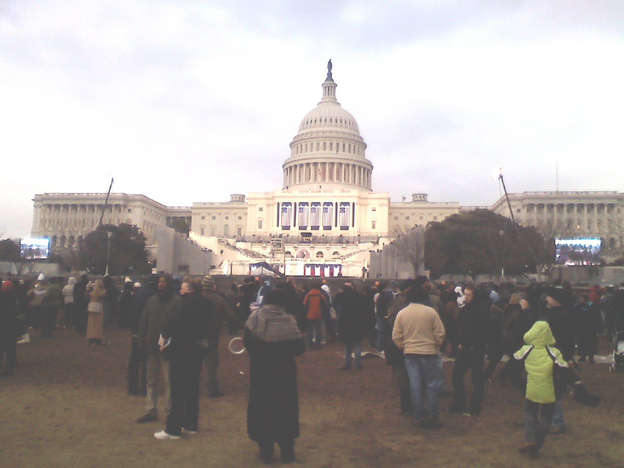 “We’re standing next to the Capitol Building. There are a fair amount of people here right now… some are walking through the mall, asking where they’ll be able to stand tomorrow.”