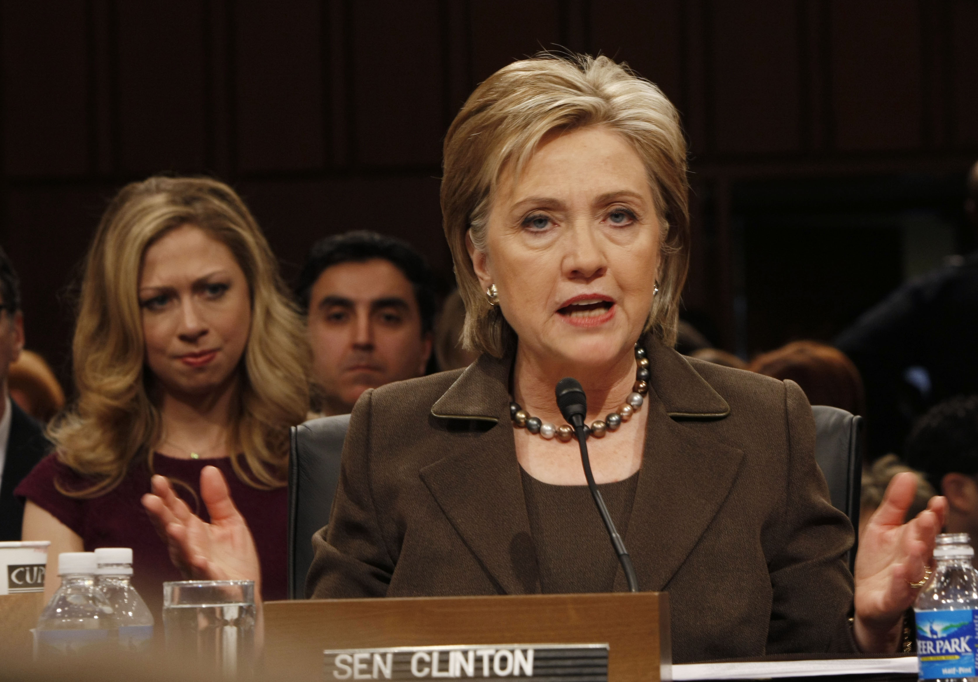 In this Jan. 13 file photo, Chelsea Clinton, daughter of Secretary of State-designate Sen. Hillary Rodham Clinton, D-N.Y., looks on during a confirmation hearing before the Senate Foreign Relations Committee on Capitol Hill in Washington. The Senate has confirmed Hillary Rodham Clinton to become secretary of state. (AP Photo/Gerald Herbert, File)