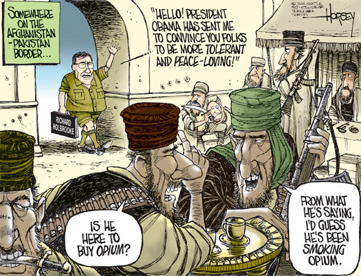 In today’s David Horsey cartoon, he takes a long look at Richard Holbrooke, President Obama’s special representative to Aghanistan and Pakistan. Holbrooke, is a top-ranking diplomat, magazine editor, author, professor, Peace Corps official, and investment banker to name a few of the posts Holbrooke has held.