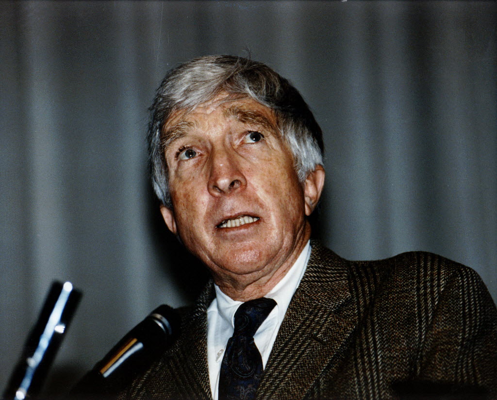 In this Oct. 23, 1990 file photo, author John Updike, speaks at a lecture at the Boston Public Library in Boston. Updike, the Pulitzer Prize-winning novelist, prolific man of letters and erudite chronicler of sex, divorce and other adventures in the postwar prime of the American empire, died today, of lung cancer, according to a statement from his publisher, Alfred A. Knopf. He was 76. Story here . (AP Photo/file)