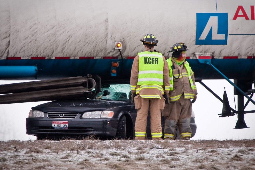 Kootenai County firefighters wait to clear the scene of a minor-injury accident in the eastbound lanes of Interstate-90 near Highway 41 in Post Falls, Idaho following a short, but havoc-causing freezing rainfall that caused dozens of accidents Tuesday between Stateline and Coeur d’Alene. Story here . First mention on Scanner Traffic here . (AP Photo/Coeur d’Alene Press, Jerome A. Pollos)