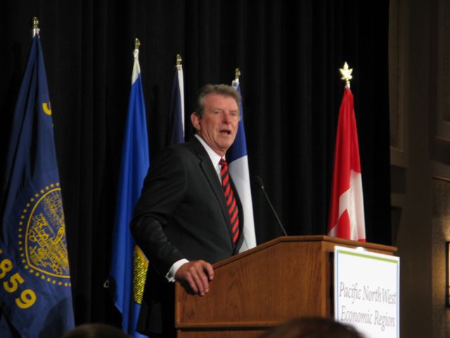 In his luncheon keynote speech today at the Pacific Northwest Economic Region’s big annual conference, Idaho Gov. Butch Otter said the best answers come from groups like PNWER, which brings together state and provincial officials from both the United States and Canada to address regional issues. Ideas that bubble up from communities around the region, he said, “are going to be a whole lot better than either you get out of Ottawa or we get out of Washington in the United States.” That drew a burst of applause. “I’m gonna look for answers from you,” he said. “… All we need is for the rest of those folks to get the hell out of the way.”