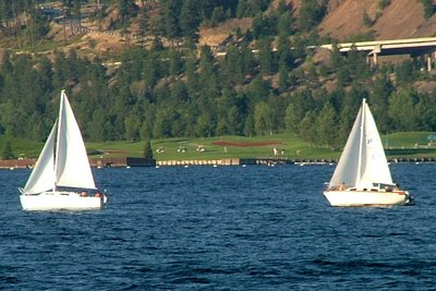 “Two sailboats ‘bookend’ the Coeur d’Alene Resort golf course floating green on Lake Coeur d’Alene,” posts Councilwoman KerriT/ OnLocation North Idaho .
