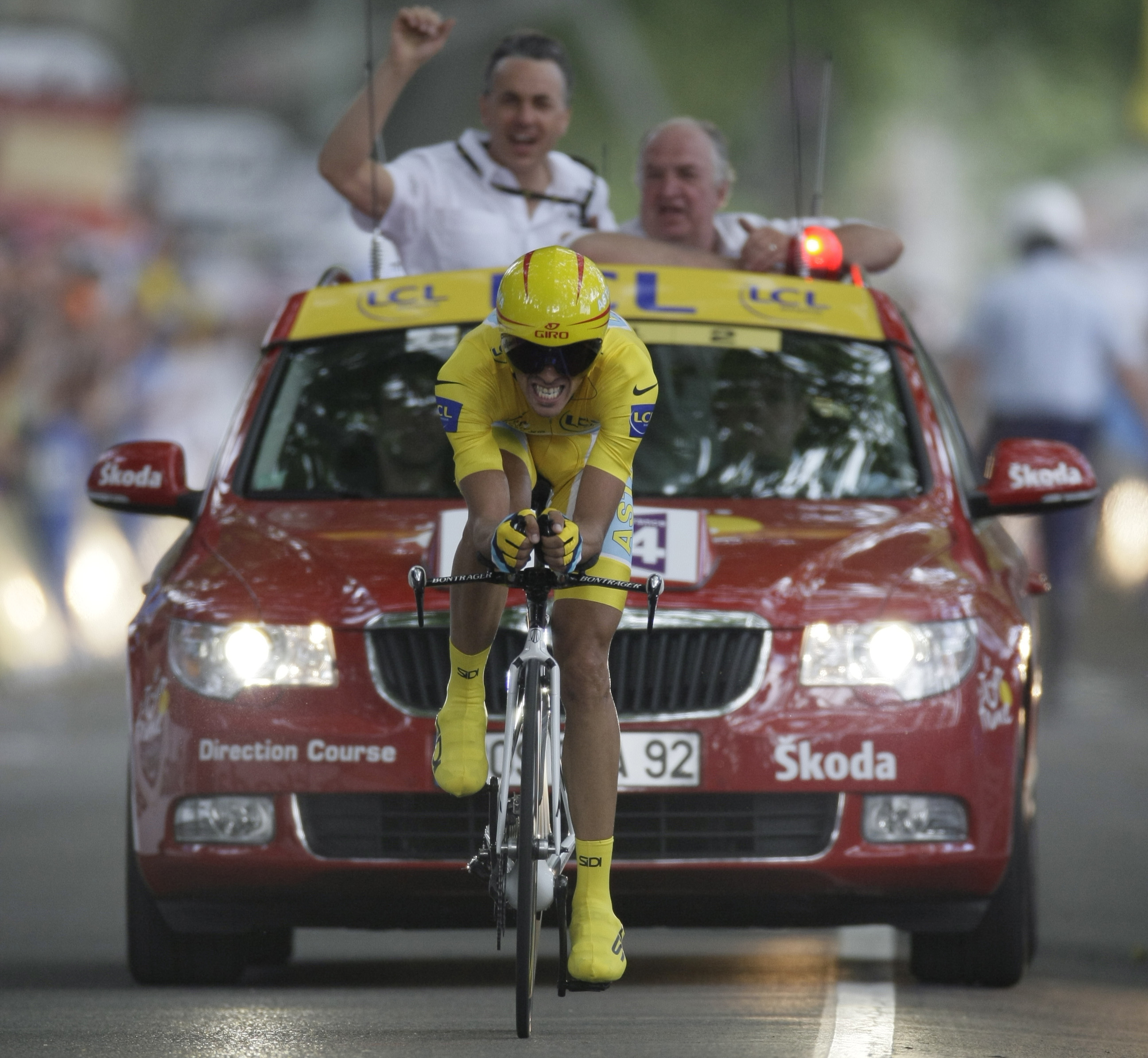 Overall, Contador leads Andy Schleck by 4:11. Armstrong is 5:25 back and Britain’s Bradley Wiggins is fourth, 5:36 behind. Germany’s Andreas Kloeden, another Astana rider, is fifth, 5:38 back. Frank Schleck is sixth, 5:59 behind.