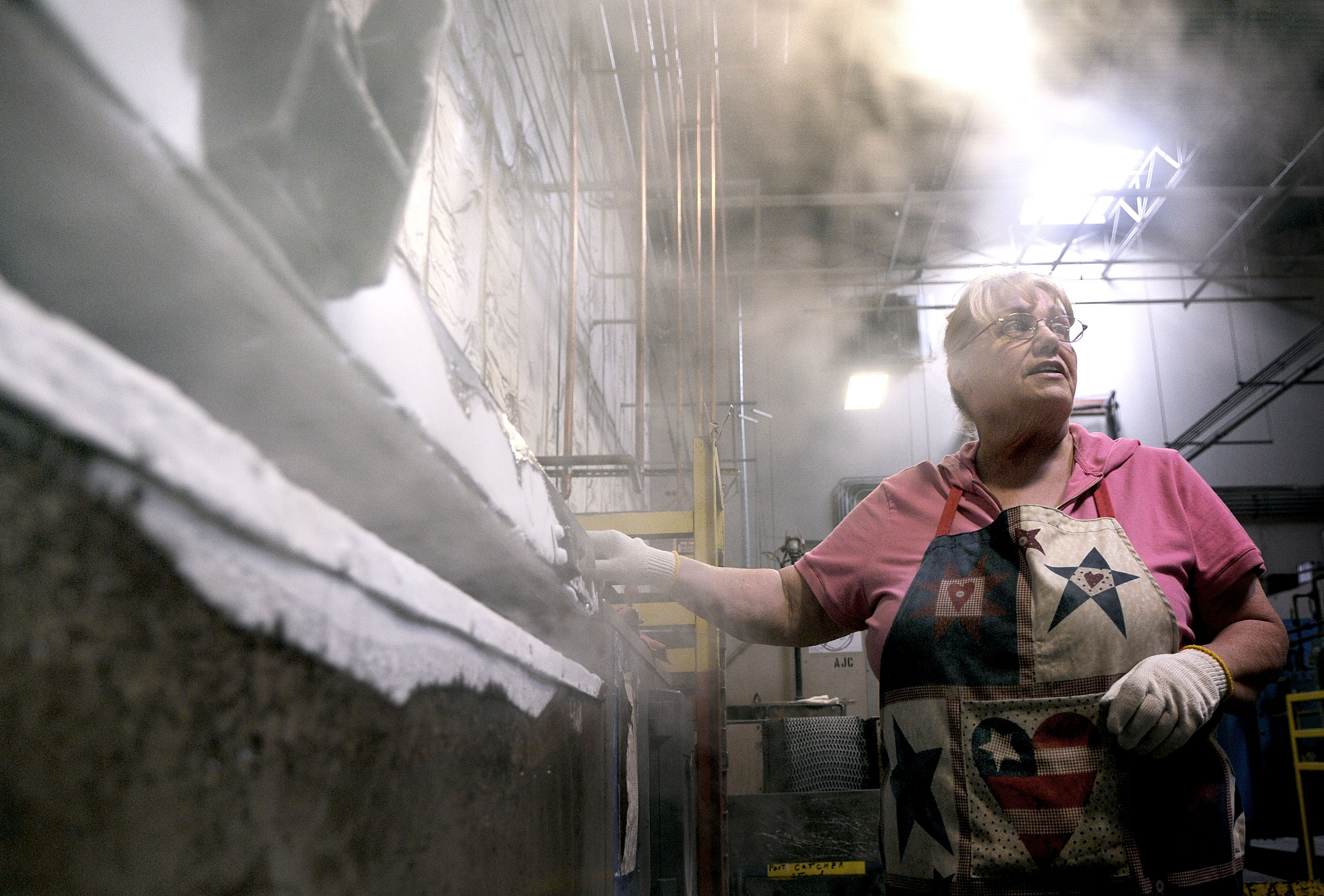 Nanci Brum, 62, of Post Falls in the heat treat department at Buck Knives in Post Falls on Wednesday. Buck Knives recently launched an initiative called the “American Commitment,” with the primary focus on making as many knives as possible in the Post Falls plant and reducing offshore outsourcing, which at its peak totaled half of all knives. Story here . KATHY PLONKA kathypl@spokesman.com