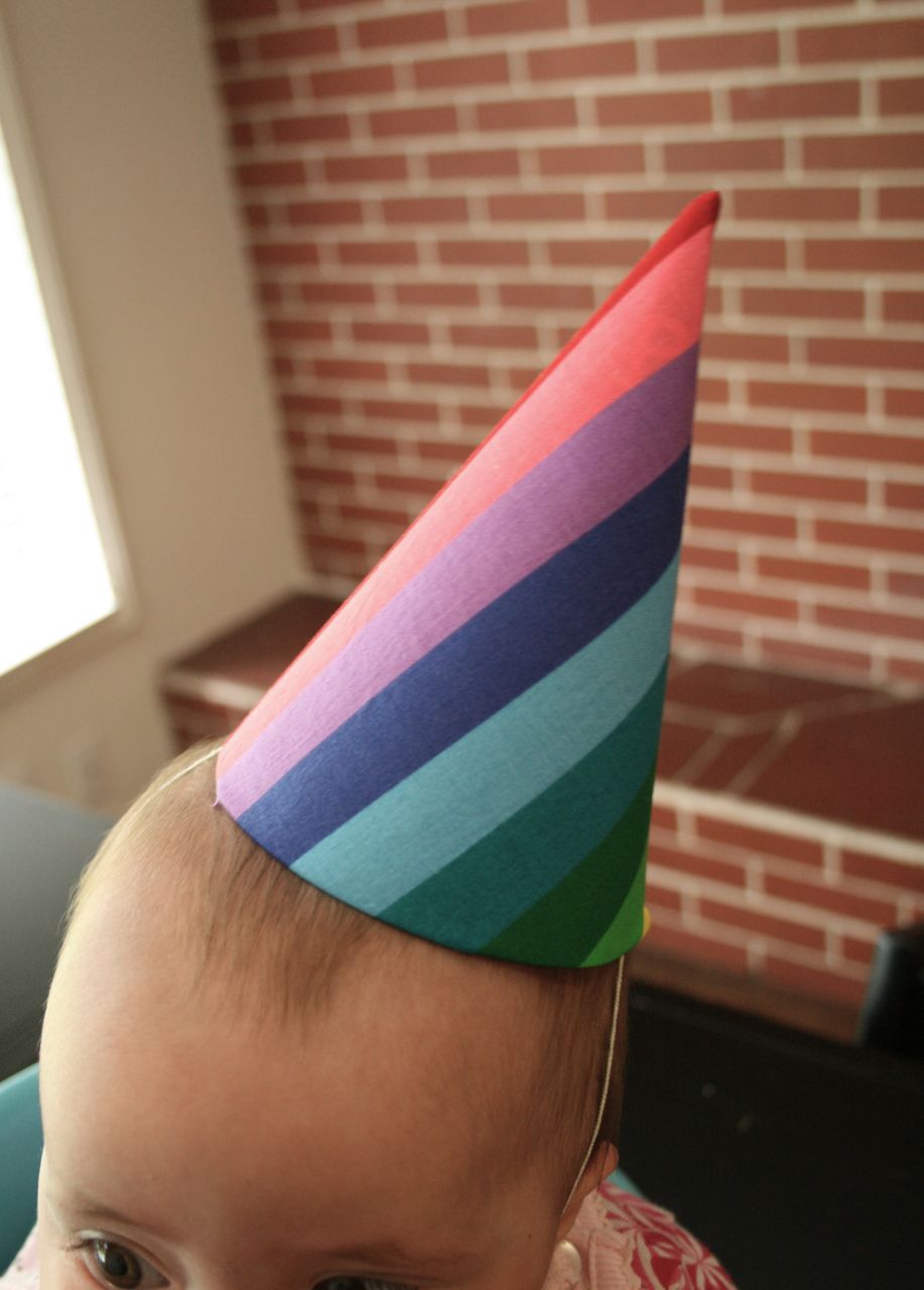 -Make your own party hats. You can see the ones my daughter and I made for her rainbow-theme birthday party above.