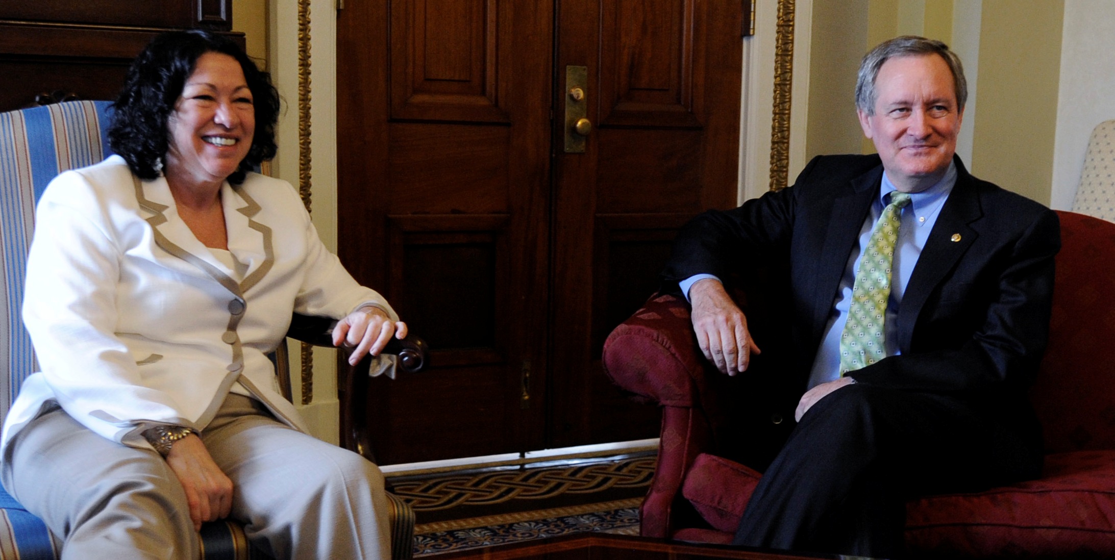 Supreme Court nominee Sonia Sotomayor meets with Sen. Michael Crapo, R-Idaho, on Capitol Hill in Washington today. News release here . (AP Photo/Susan Walsh)