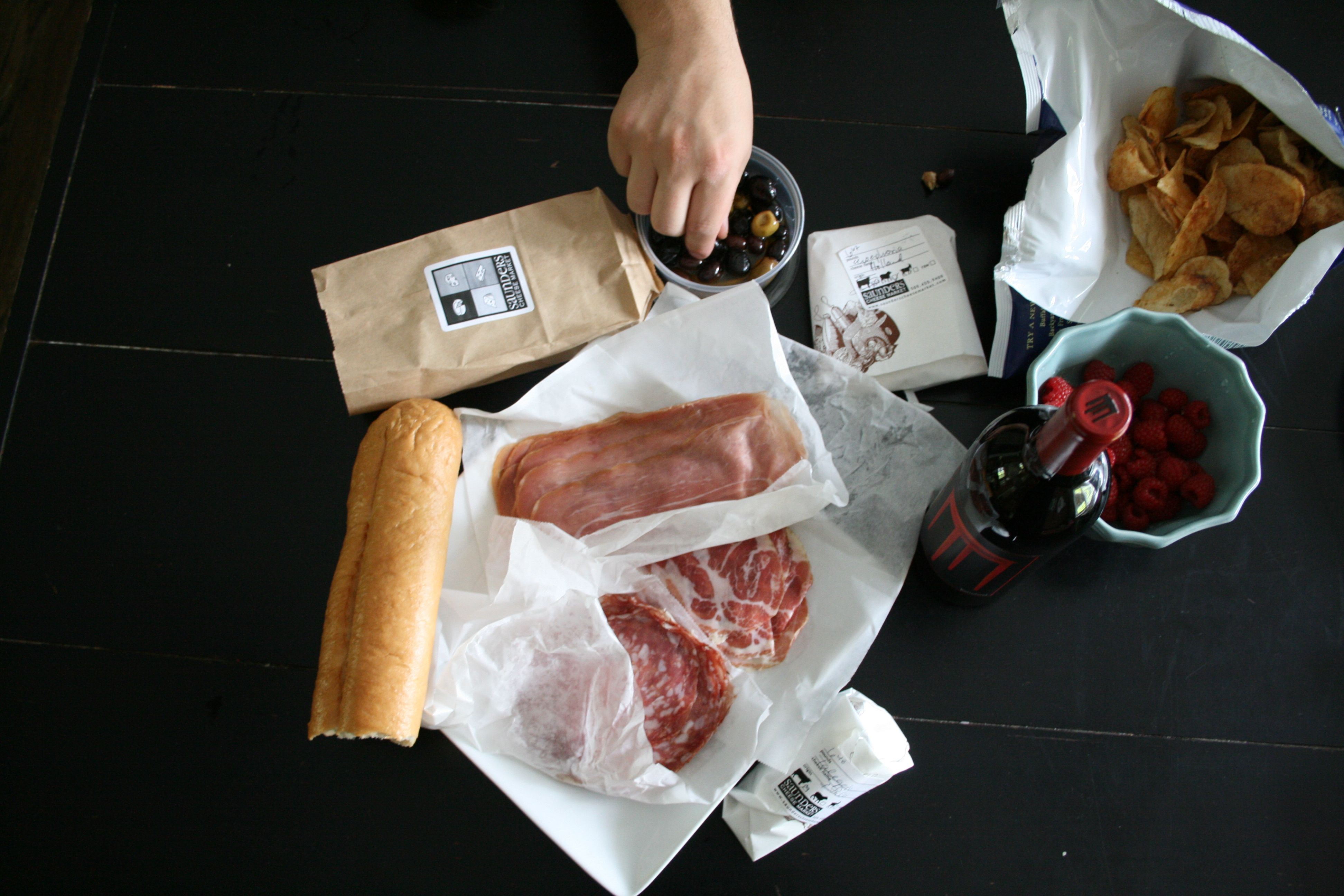For dinner, we ate a spread of meats from Cassano’s Italian Grocery ; bread from HearthBread BakeHouse (made from flour made from wheat grown by Shepherd’s Grain ); and olives and cheese from Saunder’s Cheese Market . Hmm … I should have checked to see where the cheese was made.