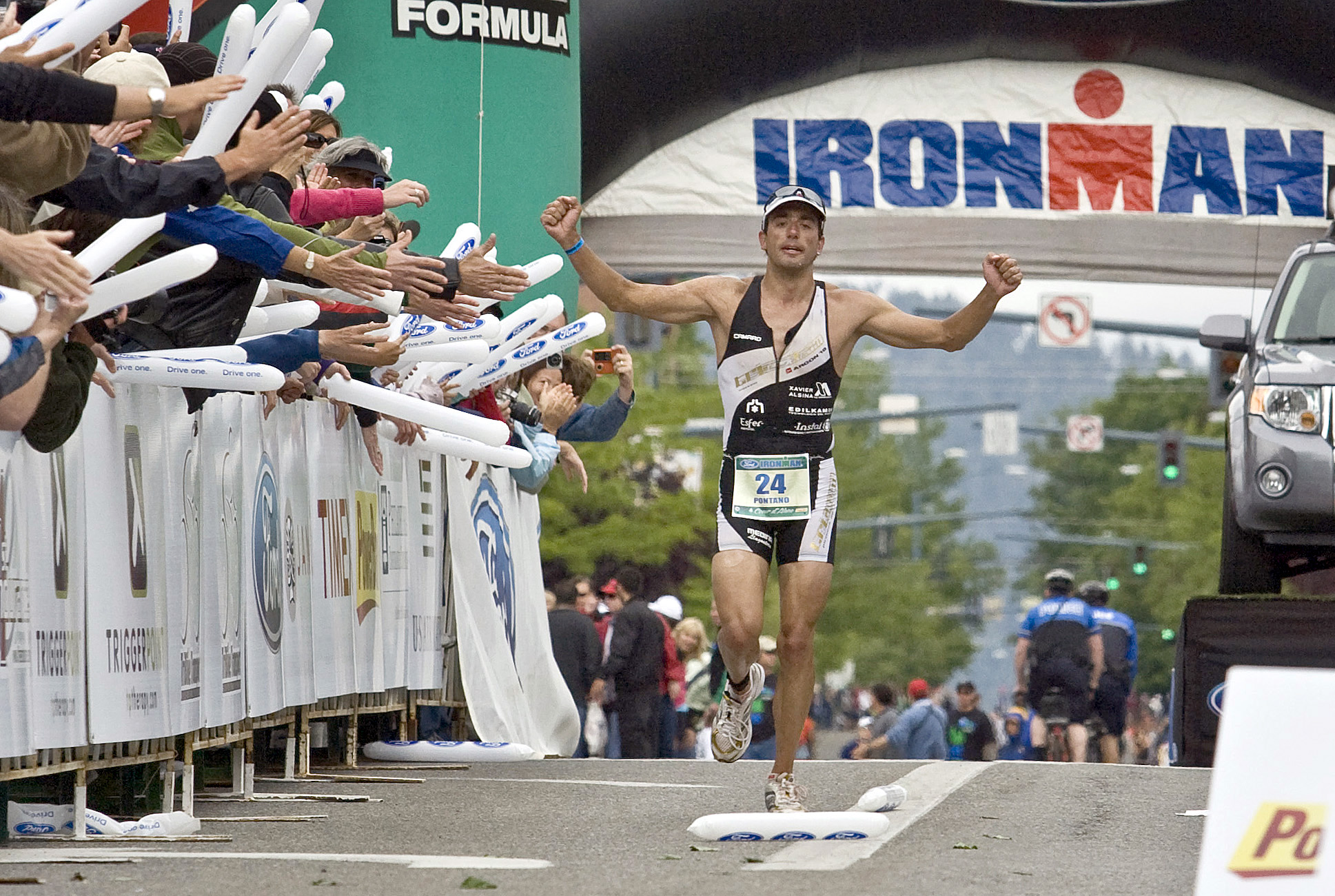 First place finisher Francisco Potano approaches the finish line of the Ironman Coeur d’Alene Sunday afternoon in downtown Coeur d’Alene. Potano finished with the time 8:32:12. Original story and more photos here . (Bruce Twitchell/Special to The Spokesman-Review)