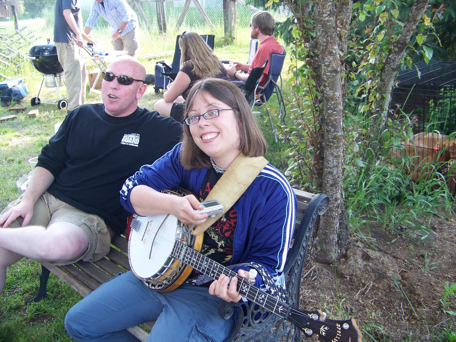 Some of the other Merry Hucksters will be by a little later to provide their impressions of the first Taryn & Bent BeerBQ Cookoff. But I’ll dub it a roaring success. ( You can read Herb’s report here. ) Dunno who won the cookoff between Bent, Redman and others because I left a little early. But I do know that the fare they laid before us was well worth the drive to Spirit Lake. I stuffed myself with Councilwoman KerriT’s beer balls and finally tasted Herb’s regionally famous potato salad. (BTW, that’s Meghann Cuniff w/Herb’s banjo above.) I already knew Bent’s personal brew was good from Blogfest ‘09. I made doubly sure by testing one with a berry tinge and another with an apple one. Mrs. Bent was handing out the brewskis. Some Merry Hucksters and a blurker of two showed up for the first time at one of our fests. Taryn was the perfect hostess. All in all, a great time — and the weather cooperated. You can use this Wild Card to discuss the BeerBQ (for those who attended) or to start your own threads …