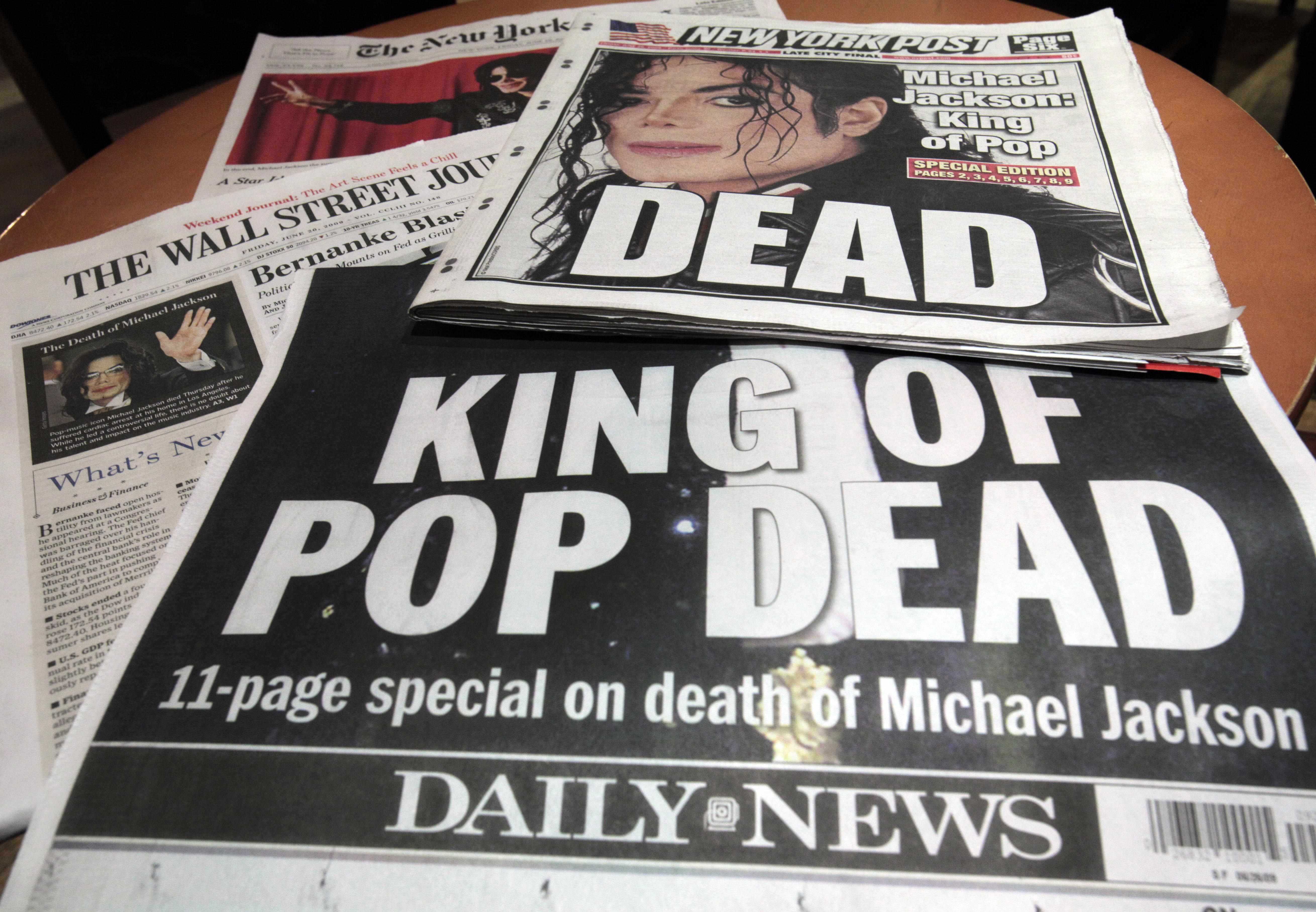 Newspaper front pages banner the death of Michael Jackson, in New York