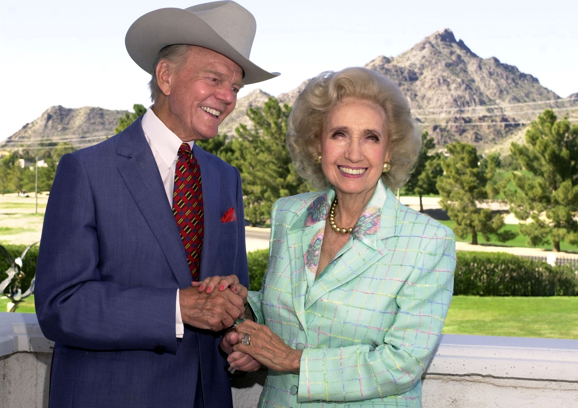 In this March 26, 2001 file photo, Paul Harvey is seen with his wife, Angel in Phoenix. Paul Harvey, the news commentator and talk-radio pioneer whose staccato style made him one of the nation’s most familiar voices, died Saturday in Arizona, according to ABC Radio Networks. He was 90. Story here . (AP Photo/The Arizona Republic, Suzanne Starr)