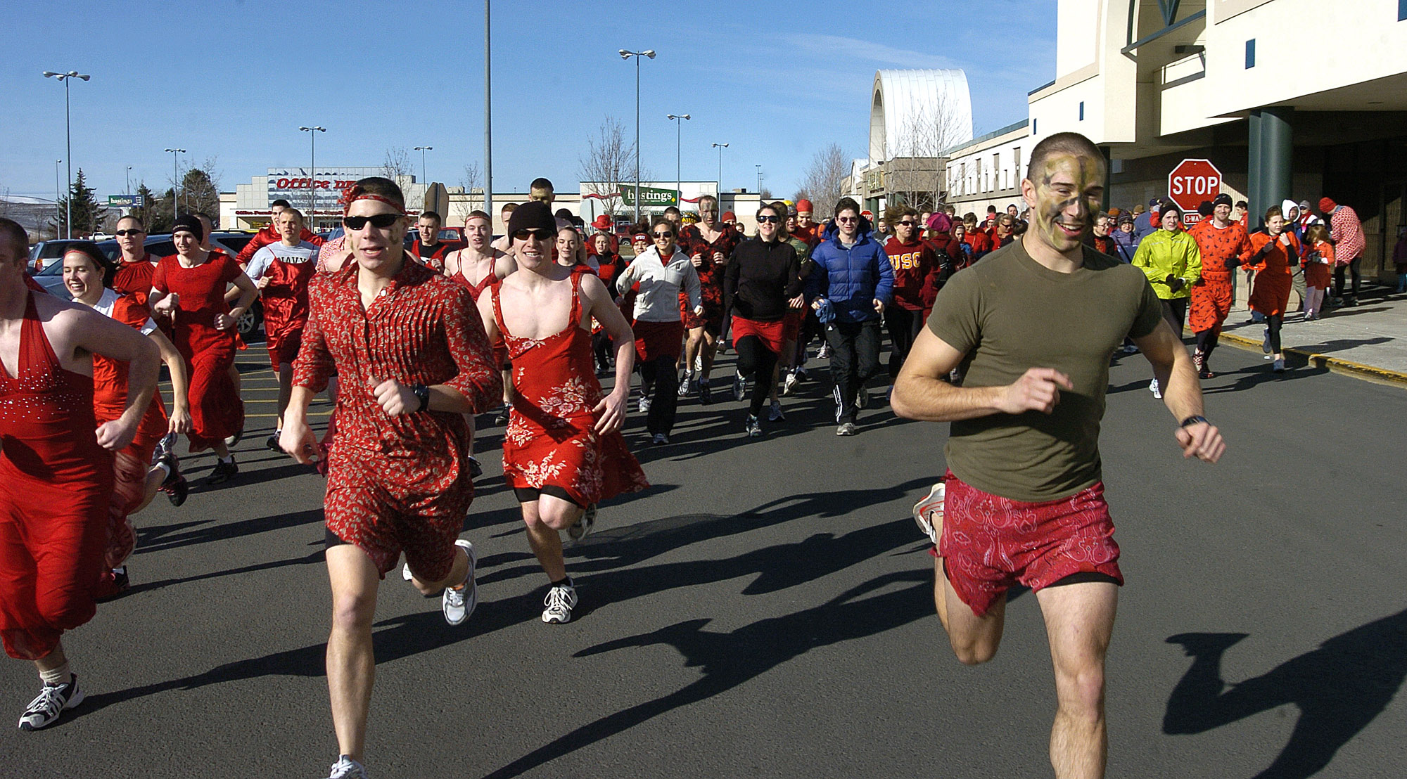 Sporting there best dresses, runners burst from the starting line of the third annual “Red Dress Run” Saturday in Moscow. Story here . (AP Photo/Lewiston Tribune, Kyle Mills)