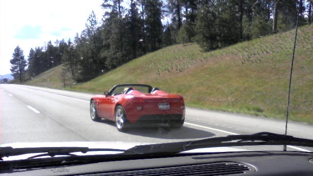 Earlier today, I posted this Sunday comment from Bent: “Hey, I think I just saw “ME” on the freeway going from Cd’A to the HWY 41 exit in Post Falls. She had her top down, and a black visor holding that blonde hair from flapping in the wind… I got a (non-identifying) cell phone pic for DFO if he wants it! My wife just shook her head and said: “what if it’s not her, she’s going to call you in for stalking …” I suppose that’s just risk a blogger has to take sometimes ;-)” Later, ME admitted it was her, with her new wheels.