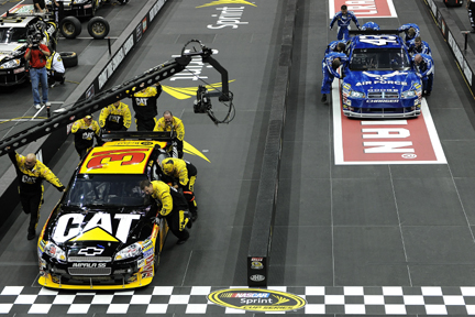Though the No. 18 crew posted a lightning-quick 22.228-second total time, the penalty was enough to give the round to the 43 Dodge, which subsequently proved to be a giant killer, knocking out the defending champion No. 83 Red Bull Toyota team of driver Brian Vickers and the No. 14 Stewart-Haas Chevrolet team of driver Tony Stewart.