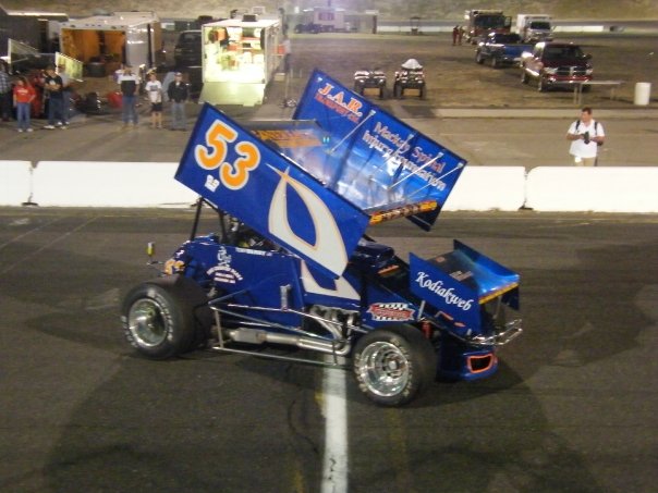 After not getting the opportunity to utilize the remainder of practice for a scuff session, the #53 Mackay Spinal Injury Foundation, Country Place, Whitley Fuel, Kodiakwebracing.com, Sir Speedy Printing Spokane, Ed Nereaux Racing Engines sprinter ran a fast lap of 16.48 seconds around the high banked half mile oval, averaging over 110 mph and good enough for quick time.
