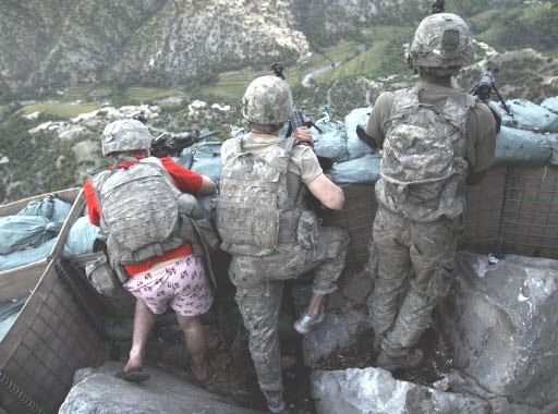 Here’s one that was overlooked, however. The above picture set off a bit of a media tidal wave earlier this month when a soldier in Afghanistan rolled out of his bunk during a Taliban attack, grabbed his helmet, vest and rifle, but nothing else, and rushed to the sandbags to fire back.