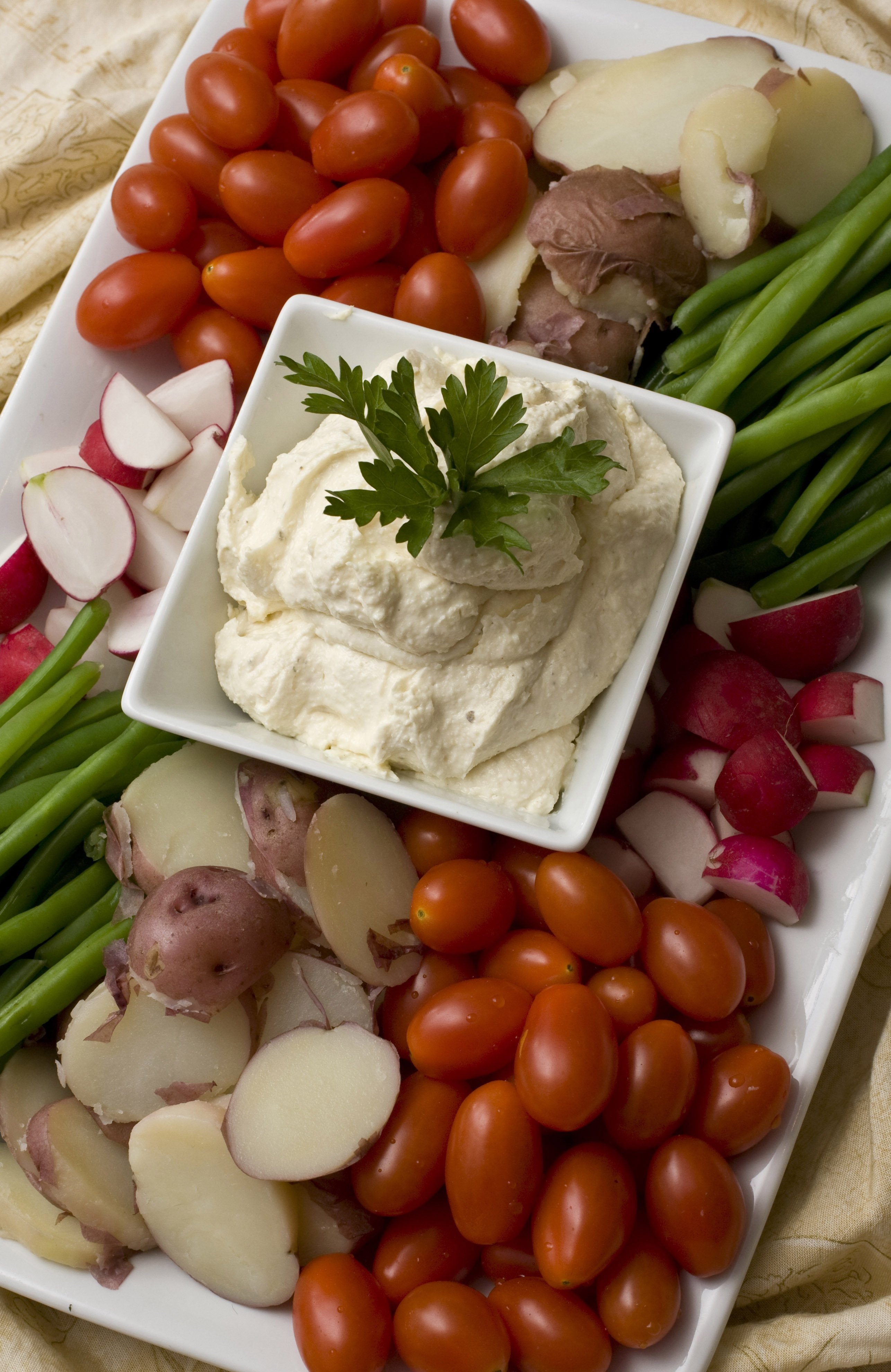 The dip is extremely versatile, so you can use any vegetables you prefer or find on sale. As with any crudités platter, you will need about 1 pound of vegetables for every 5 to 6 people.