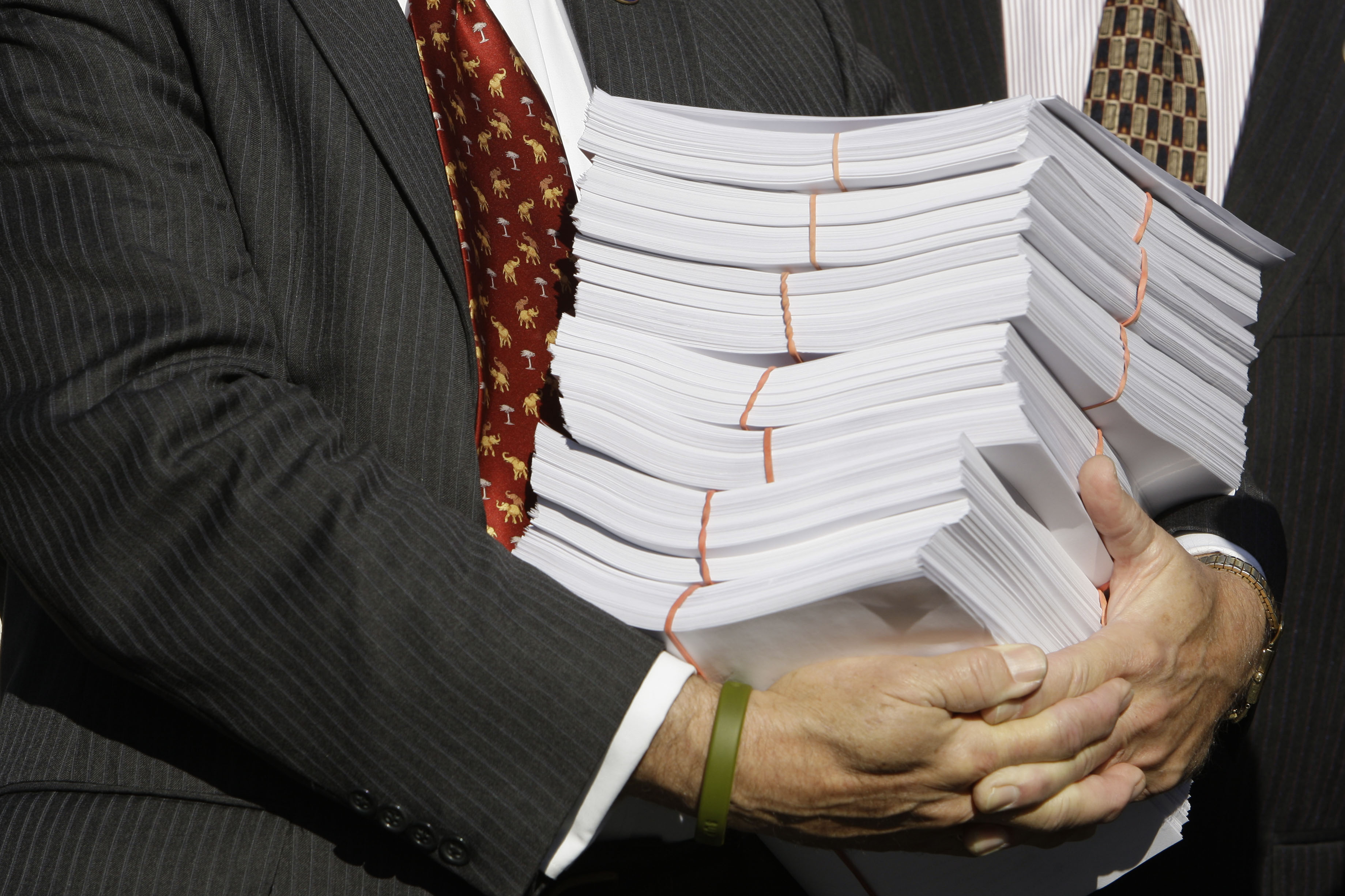 Rep. Joe Wilson, R-S.C., left, holds a copy of the health care bill during a news conference on Capitol Hill in Washington, Wednesday, to announce an amendment to the health care bill. (AP Photo/Alex Brandon)