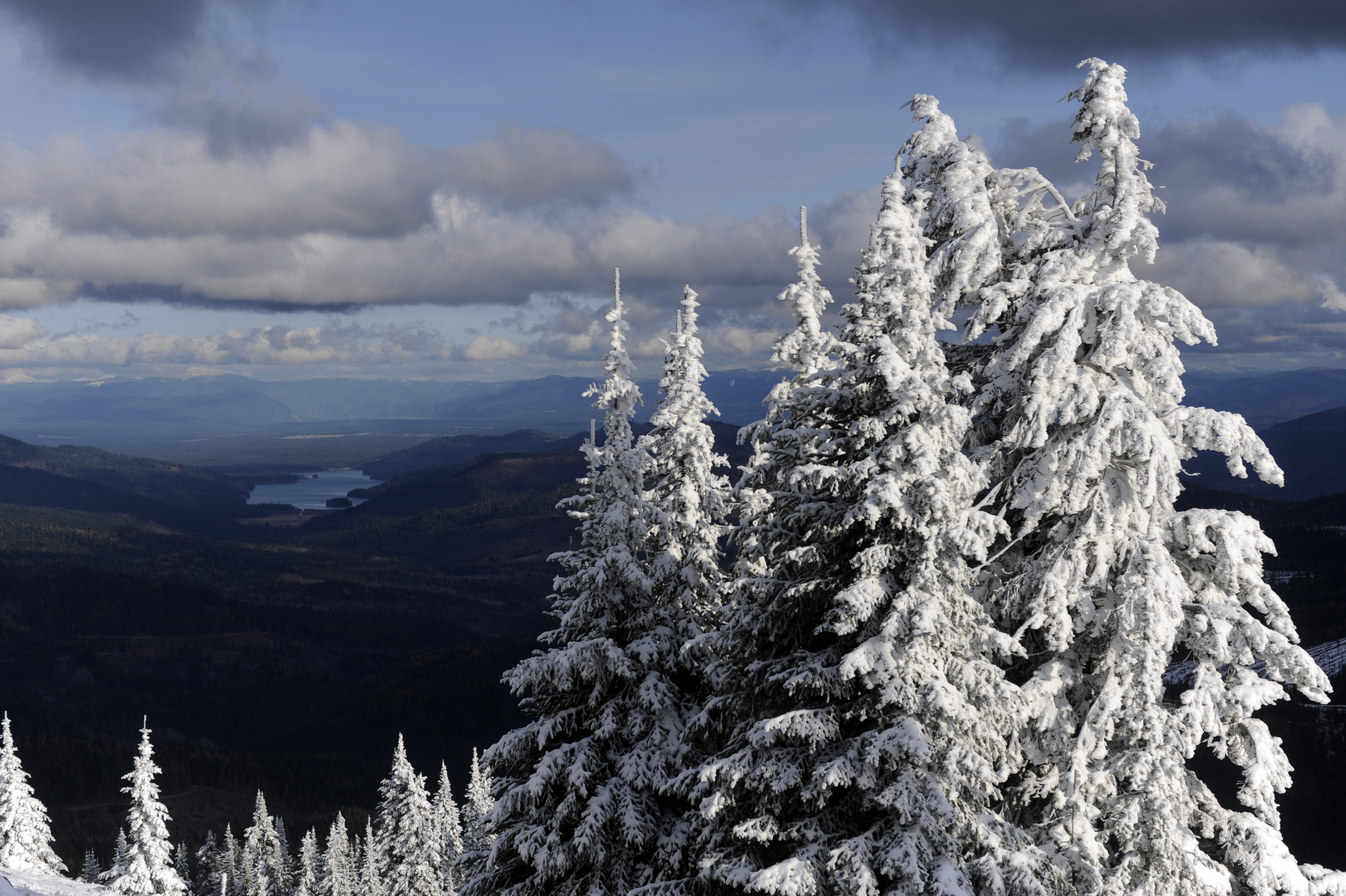 Trees near the top of the mountain are rimmed with snow Tuesday at Mt. Spokane Ski and Snowboard Park.