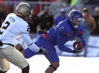 quarterback Kellen Moore threw for five touchdowns and wide receiver Austin Pettis had four touchdown grabs, tying a school record for receiving scores in a game. Moore leads the country with 32 touchdown passes and Pettis is tops with 14 touchdown catches. The potent combination overshadowed other solid performances, such as Titus Young’s six-catch, 101-yard performance and Jeremy Avery’s 110 yards rushing. Avery averaged 7.9 yards per attempt. Moore and the offensive line did a nice job of picking up Idaho’s blitzes. The Vandals brought more pressure than normal and it left plenty of room in the secondary for the Broncos wide receivers to run free/