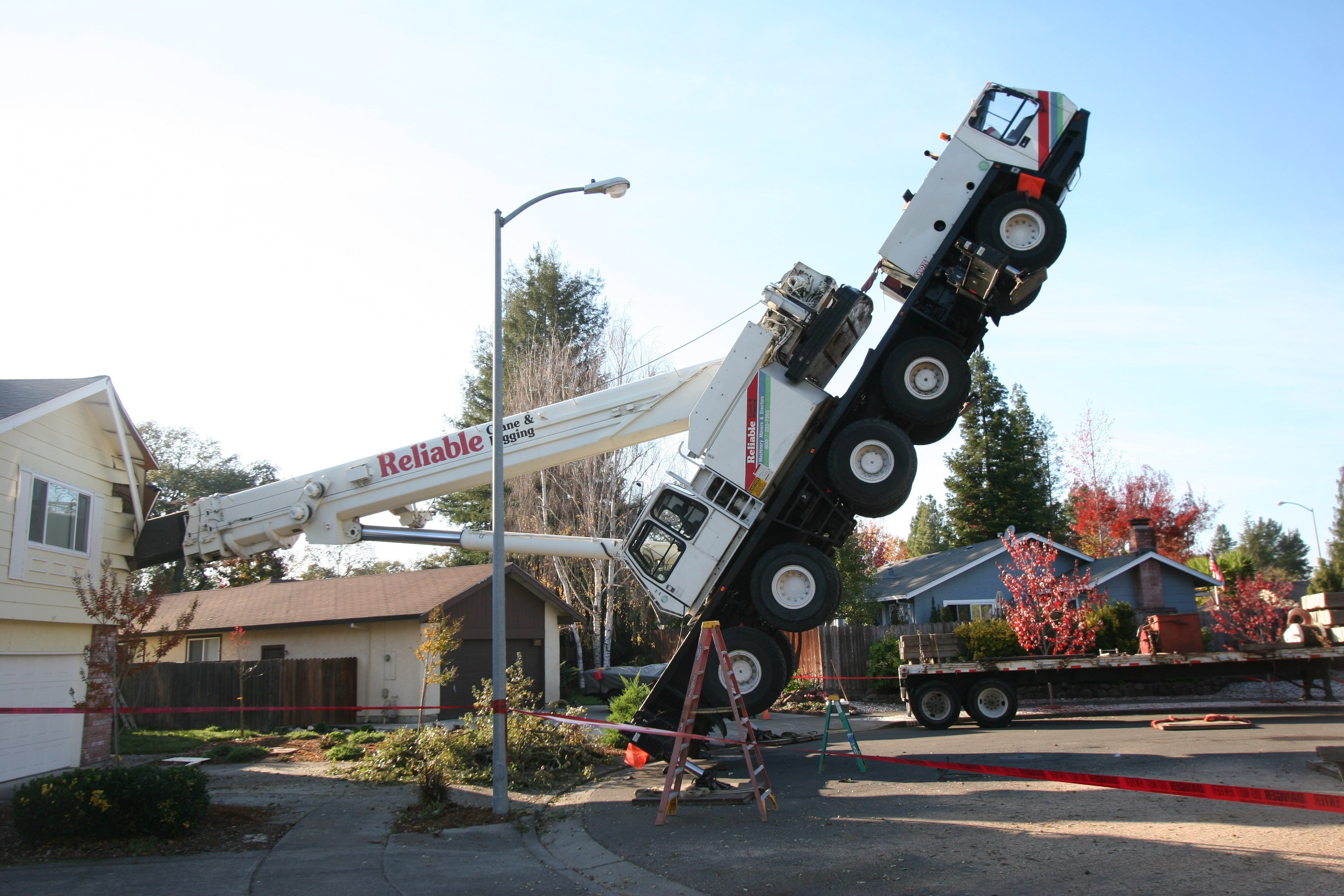A crane removing an oak tree from the yard of Michelle and Kevin McCarthy is seen after it toppled into the house Monday afternoon in Santa Rosa, Calif. You write the cutline. (AP Photo/Mark Aronoff, The Press Democrat)