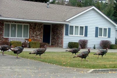 With less than a week before Thanksgiving, a family of wild turkeys parades through a Fernan Lake neighborhood, posts KerriT / OnLocation North Idaho .