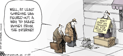 Izzit just me, or does that guy with a sign look a bit like Dan Gookin during his Libertarian days? (Disclaimer: Dan is looking dapper today by comparison) You can get a better look at the cartoon here .