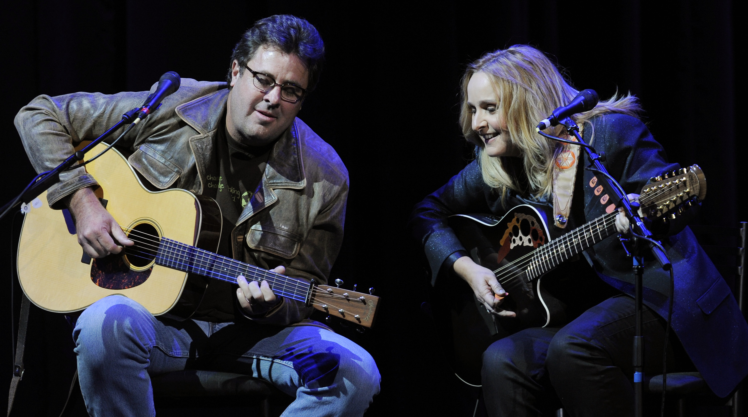 Vince Gill, left, and Melissa Etheridge perform together onstage at the Country Music Hall of Fame and Museum’s All for the Hall fundraiser in Los Angeles Thursday in Los Angeles. (AP Photo/Chris Pizzello)