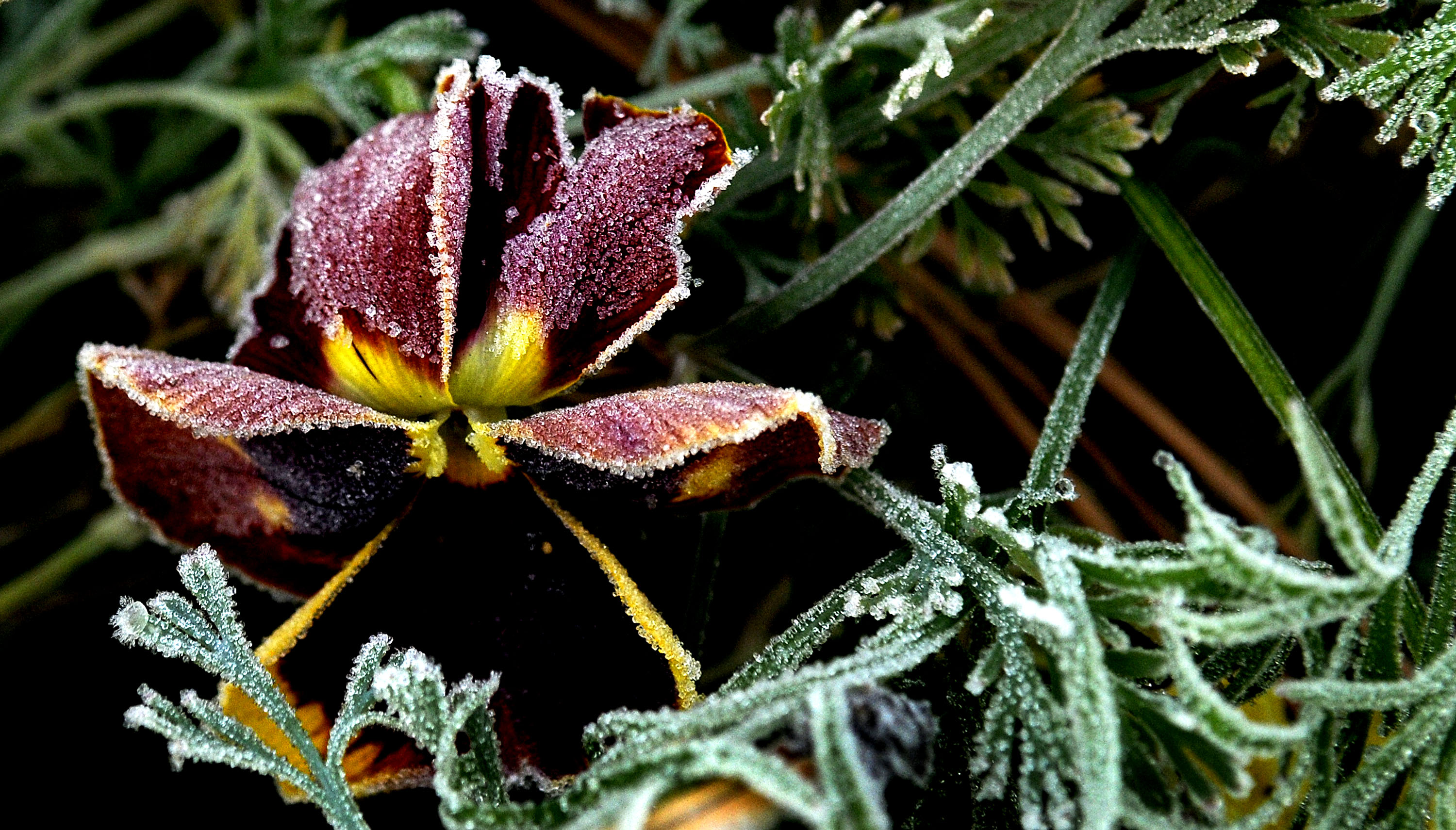 This pansy was covered in frost at Ramsey Park in Coeur d’Alene on Thursday. (Kathy Plonka/SR)