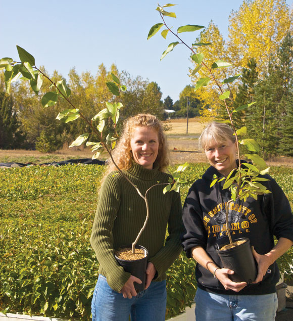 Annette Brusven, left, and Sue Morrsion, right, hold the Gnarly Poplar Trees at the University of Idaho’s Franklin H. Pitkin Nursery. The Gnarly Poplar is the University’s first patented tree. Story here . (Sam Eaton/Argonaut)