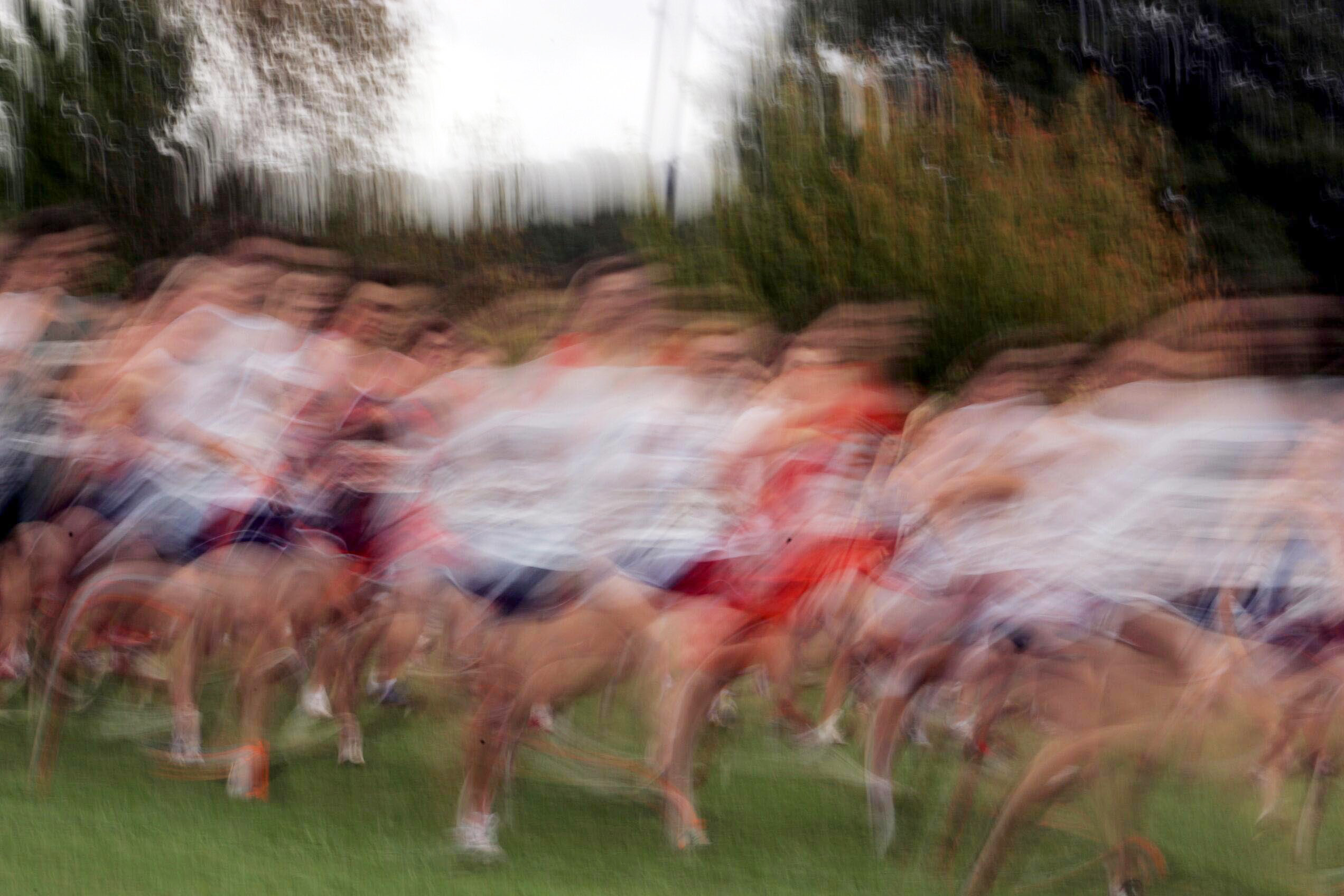 Boys cross country runners become a multi colored blurr due to a slow shutter speed during the Metro Championships at John Hunt Running Park in Huntsville, Ala., today. (AP Photo/The Huntsville Times, Robin Conn)