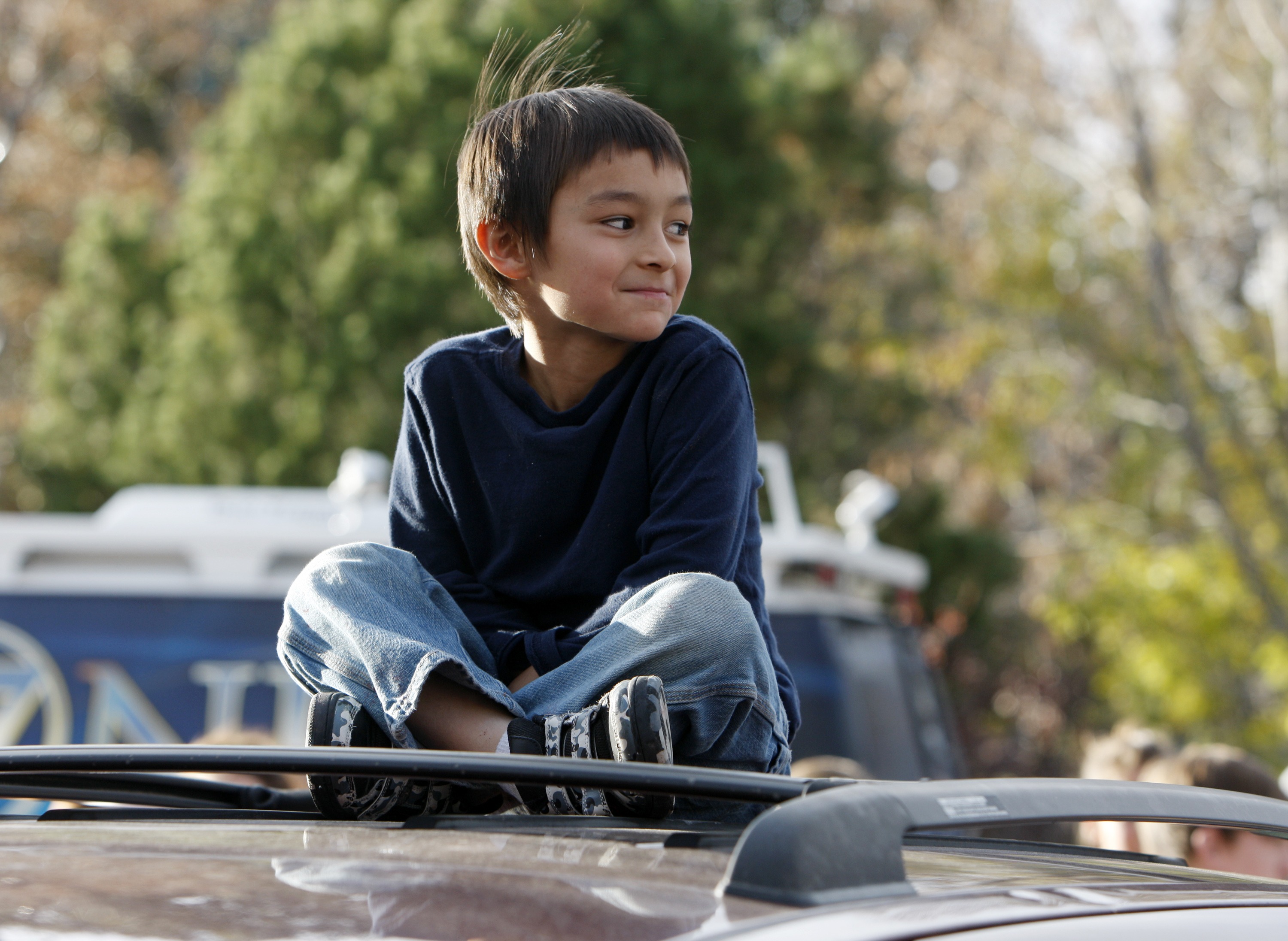 Six-year-old Falcon Heene sits cross-legged on the roof of his family’s van outside his home in Fort Collins, Colo., after the little boy was found hiding in a box in a space above the garage on Thursday. Falcon Heene at first had been reported to be aboard a flying-saucer-shaped balloon fashioned by his father and then carried by high winds on to the plains of eastern Colorado. A county sheriff said today that there is no evidence that the incident was a hoax. Story here . (AP Photo/David Zalubowski)