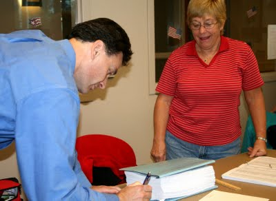 Chris Pappas, retired City Clerk, was back in Post Falls City Hall Monday morning, overseeing the start of absentee balloting. City Administrator Eric Keck (pictured with Pappas) cast the second ballot, right behind Larry Carstensen / KerriT, Main Street. More here .