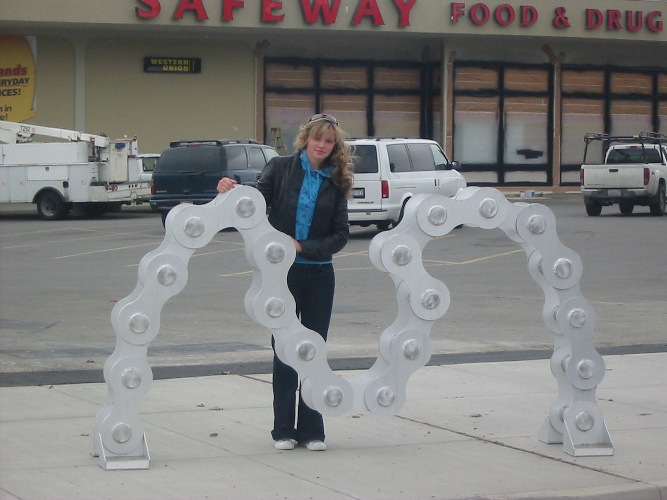 Artist Tyree Kerns shows off one of the cool, new bike racks in Midtown — the one in front of Midtown Safeway’s. Tyree and the city’s Arts Commission was responsible for the design of the bike racks.