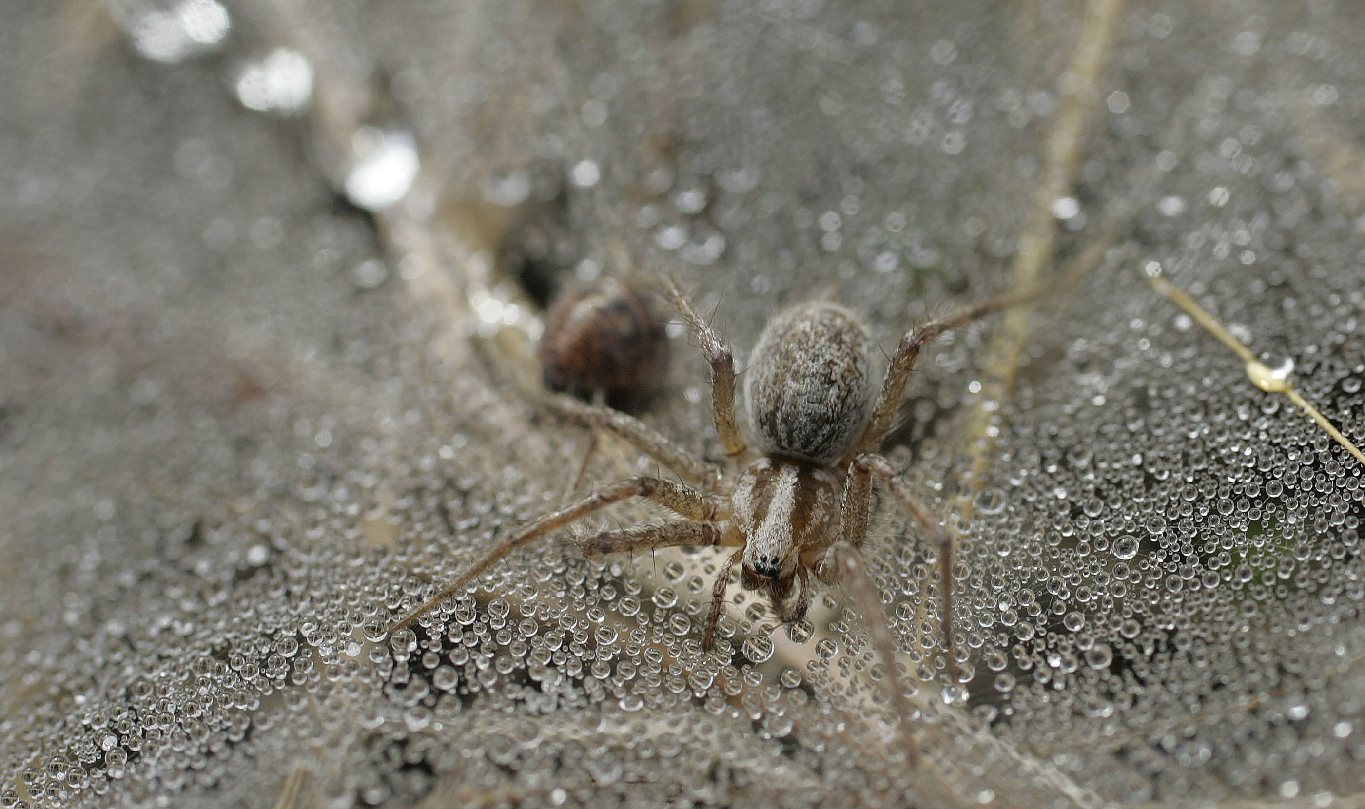 In a photo taken last Tuesday, a spider waits patiently on its dew-covered web in the Willow Creek Preserve in Eugene, Ore. (AP Photo/The Register-Guard, Kevin Clark)