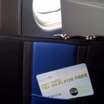 my “maiden voyage” of blogging at 30,000 feet, thanks to Delta and a company called Gogo. Delta did its part, but woe unto Gogo … (photo taken before we took off) … No promotional code was clearly stated on the card (or handed out) to the 100 or so of us who received cards as we boarded. It could have been there, but the flight attendants, several geek-types and other familiar with promo codes couldn’t see it … I said I’d post a blog…and I’m doing it (at $9.95 for today); man, what a bad-bad PR deal for Gogo. My thought is that this really cool thing could have been so much easier and cooler. But first tries are often goofy. Next time? It’ll be better.