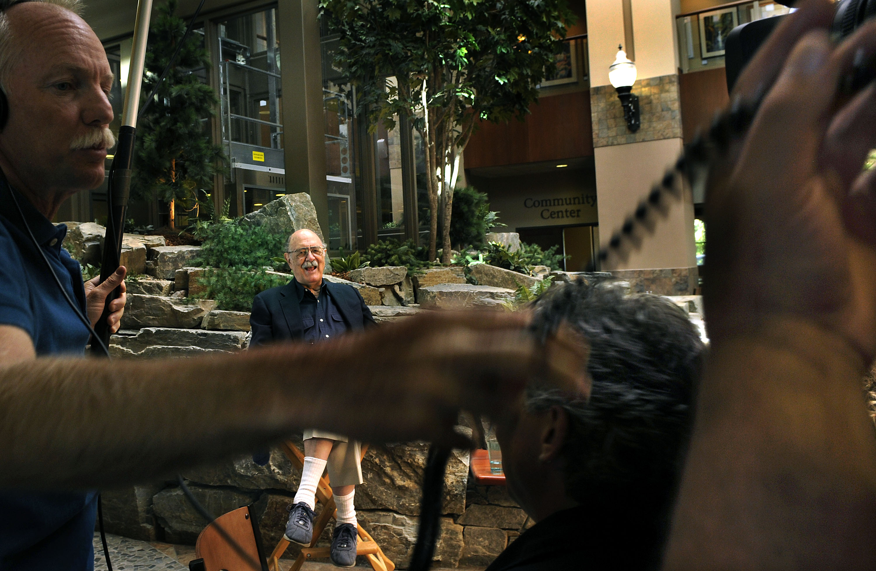 Ted Parvin, center, chairman of the Northwest Film Institute, participated in a promo for a screenwriting competition in Sandpoint on Thursday. Parvin, who has “Psycho” among his credits and a group of media professionals living in the Sandpoint area are working together to start a year-long graduate level film school. Story here . (Kathy Plonka/SR)