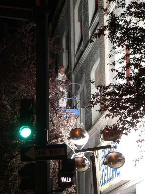 Don Sausser was there with his camera Wednesday night when bright floodlights brought attention to the Dingle Building on 4th & Sherman (home of the Sports Cellar) where workers pressure wash the exterior for new paint.