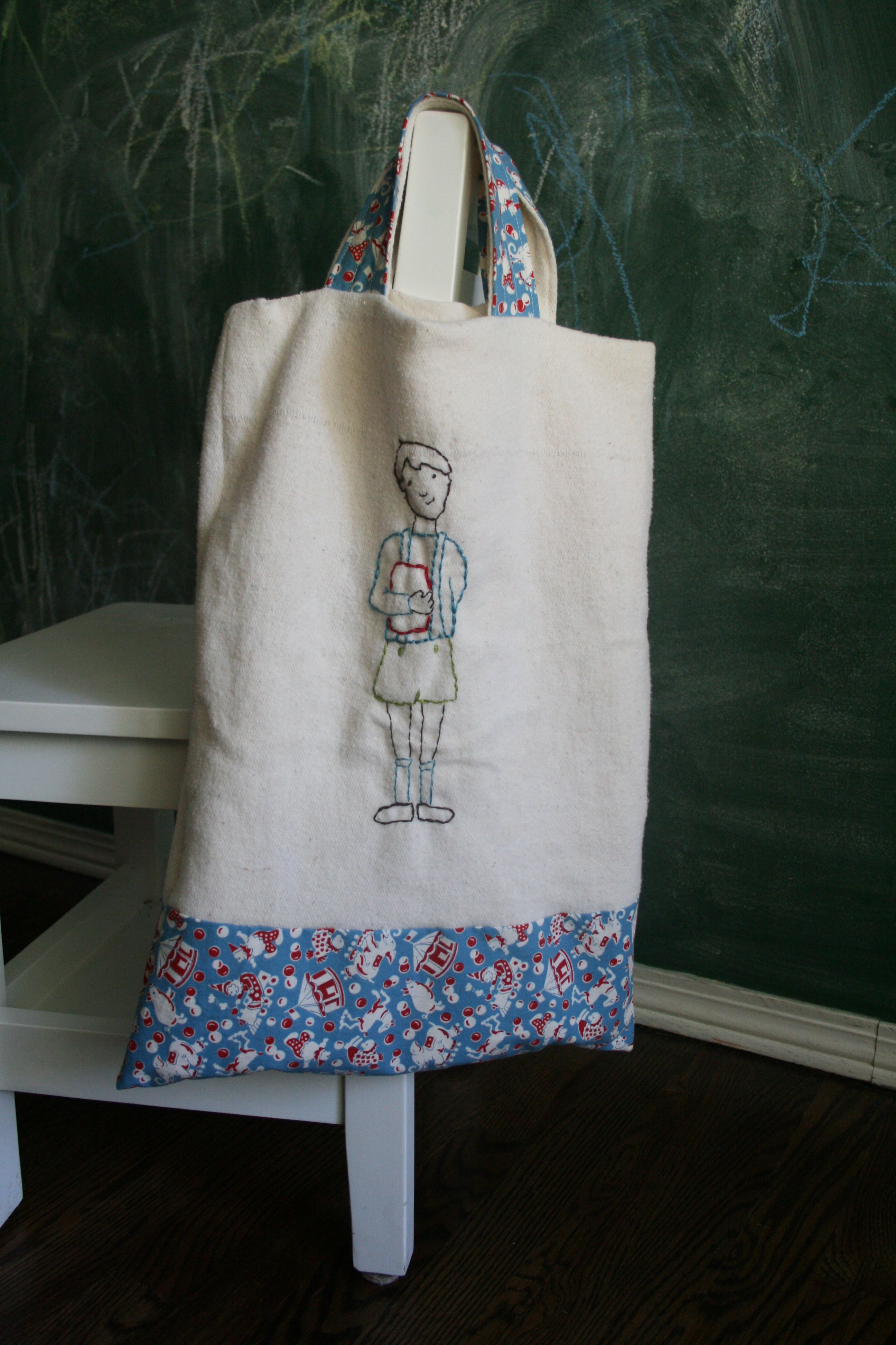 Embroidery is everywhere right now—on blogs, in books, and on the bag you see above that I made last weekend for a friend’s baby shower. (It’s meant to be a book bag her son can use at the library in a few years. I followed this design by Sarah Jane Studios )