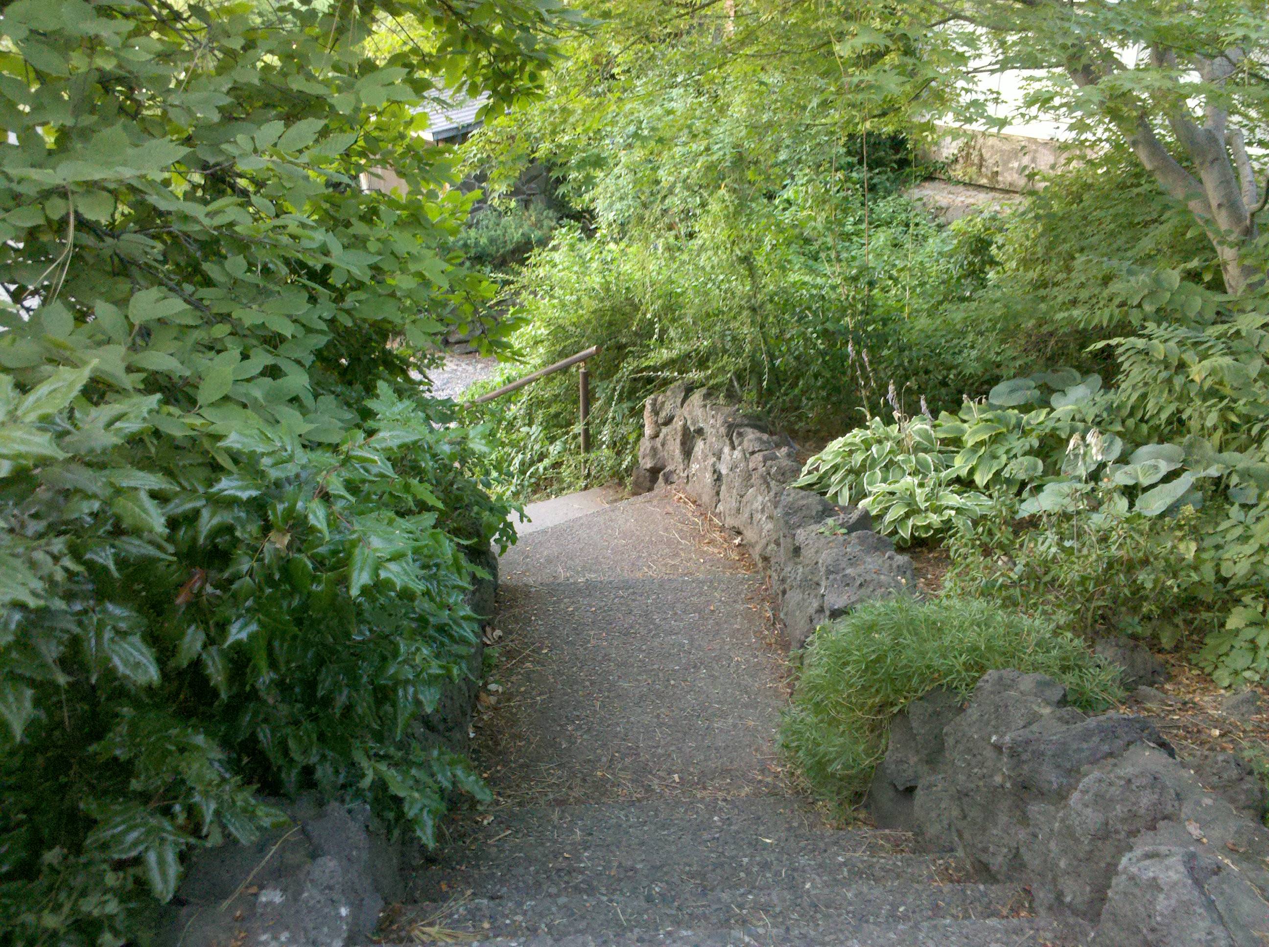The thing about the park is that there are all sorts of corners where you can hide away. Secluded benches in the space under the boughs of a tall fir tree. Leafy rooms with walls made of hedgerows and stacked stone. A vine-covered gazebo tucked beside a stone building.