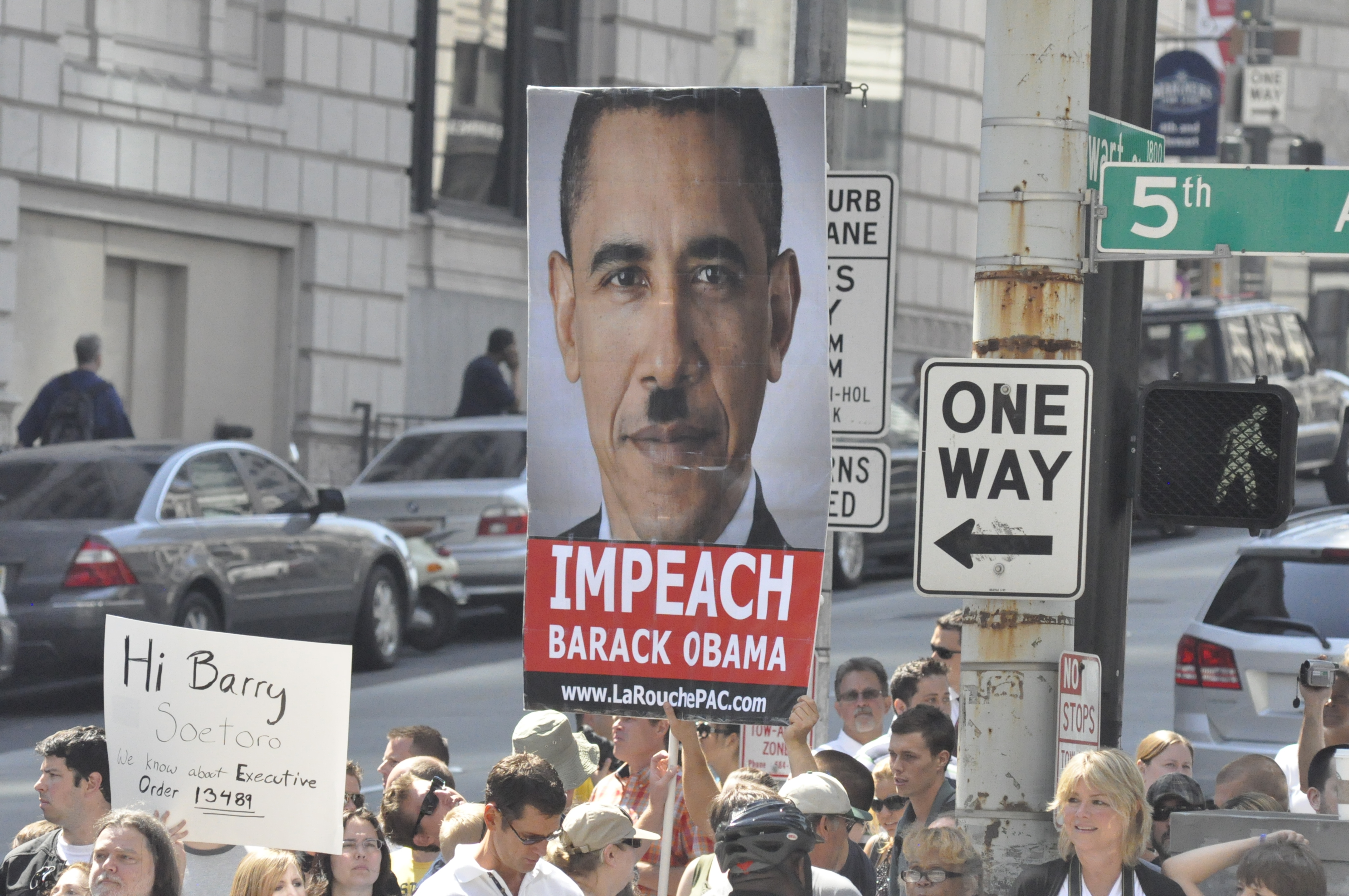 SEATTLE — Supporters of Lyndon Larouche protested against President Obama during his visit Tuesday.