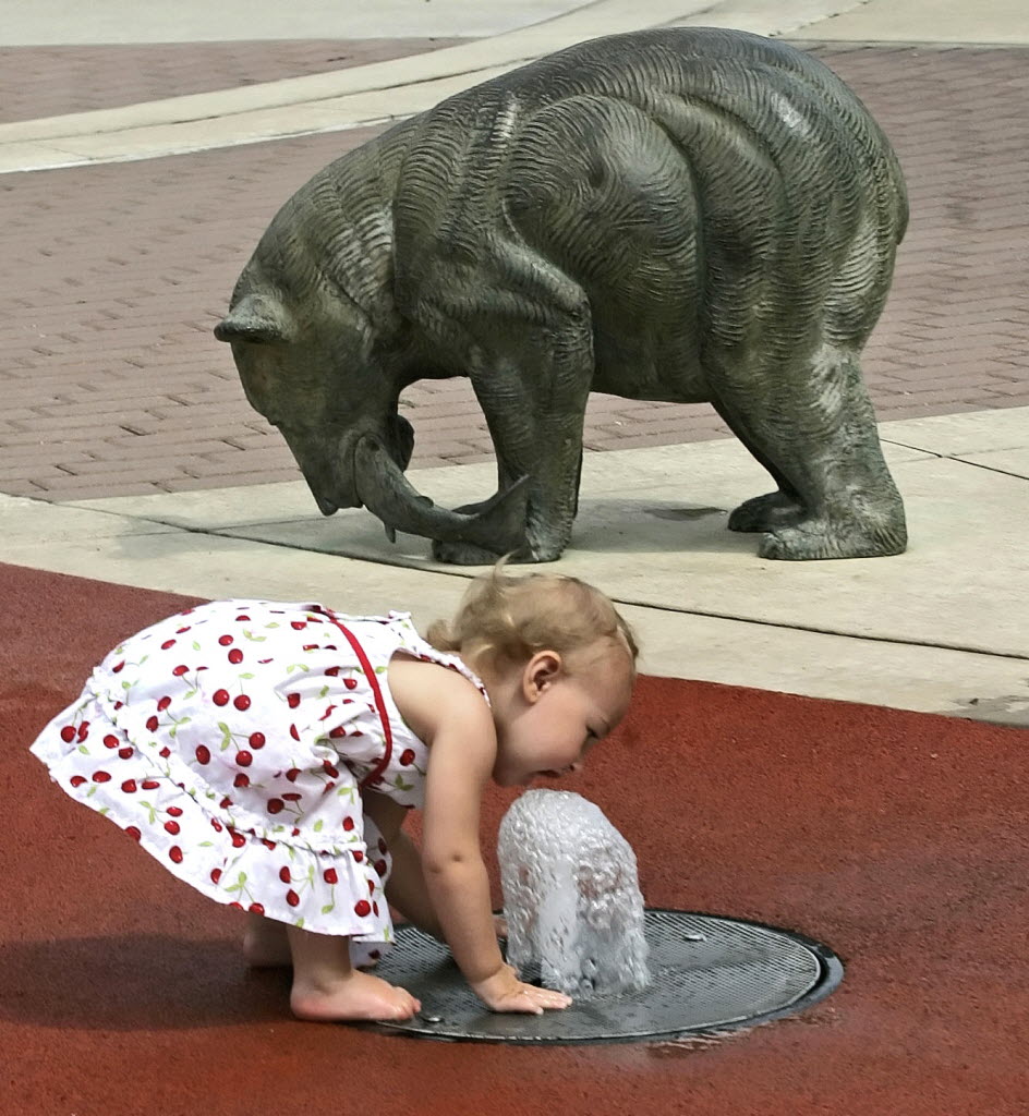 Sixteen-month-old Kiara Robertson drinks from one of the fountains at the Columbian Park Zoo Tuesday in Lafayette, Ind. You write the cutline. (AP Photo/Journal & Courier, Michael Heinz)