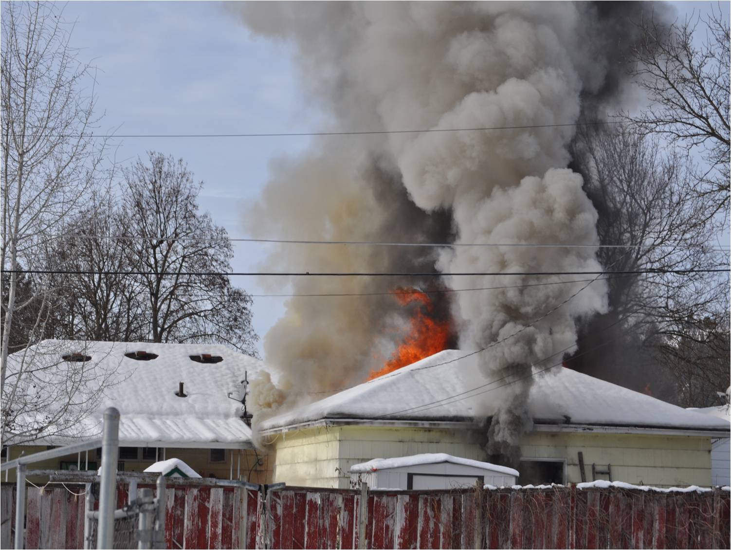 Seven fire trucks responded to the location at 3102 N. Lily Road just after noon. When firefighters arrived the garage was aflame and a neighbor’s garage was also beginning to burn. No one was injured in the fire. The garage and its contents were a total loss. The neighbor’s garage sustained $1,000 in damage. The photo is courtesy of Spokane Valley Fire.
