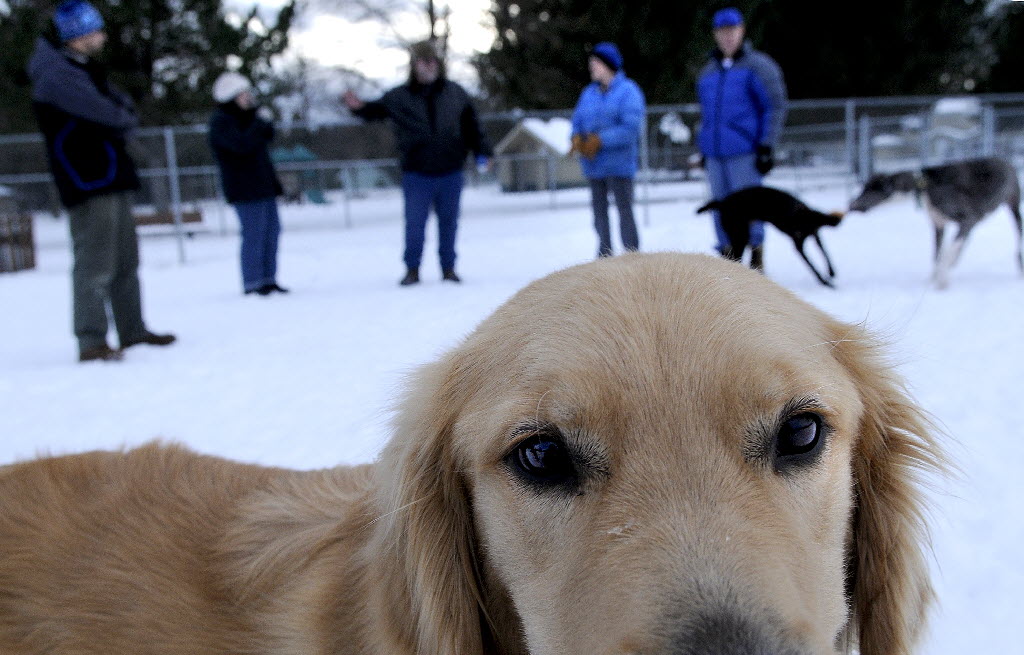 Cooper, the Golden Retriever, owned by Kelly Nelson of Coeur d’Alene visited Central Bark dog park in Coeur d’Alene today. A Spokane park will soon host its first frolicking off-leash canine Ð legally. The Spokane Park Board is scheduled on Thursday to approve a contract with SpokAnimal C.A.R.E. to open and maintain the city’s first off-leash dog park. Jonathan Brunt story here. (SR photo: Kathy Plonka)