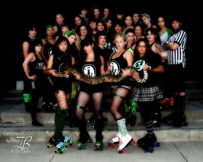 Nicole Nolan of the Shoshone News-Press provides a nice wrap-up story of the 2010 Roller Derby season enjoyed by the Snake Pit Derby Dames, whom you can see above in a Facebook photo taken by Lillie Belle Photography . You can read the News-Press story here .