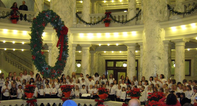 On its Twitter account, Idaho Reporter posts this photo of school children singing Christmas carols at the Capitol.