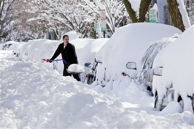 Mark Jordan digs out of snow on Capitol Hill that was left from an intense winter blizzard that hit the nation’s capital and much of the Mid Atlantic region. (AP Photo/J. Scott Applewhite)